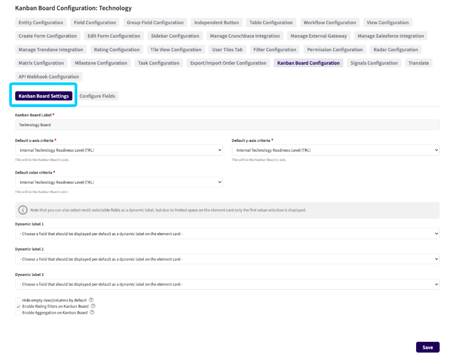 Set the Kanban Board label to configure how it is represented in the menu. (1)