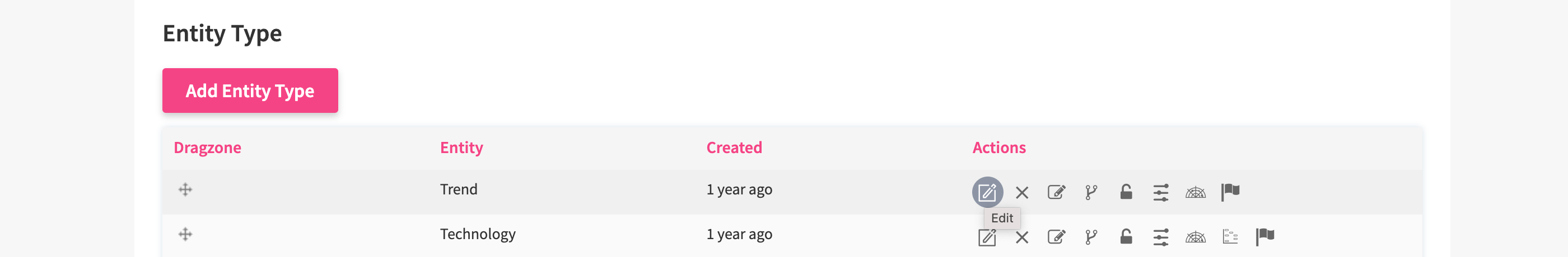 To enable the Board Module in a certain entity, Go to the Settings Wheel > Entity Configuration > Entity Configuration. In the entity manager choose an entity and click on the Edit-Icon.