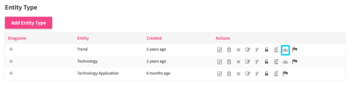 After enabling the module, you can configure the default view according to your preferences. To access the Radar Configuration tab, click on the Radar icon on the Entity Configuration interface.