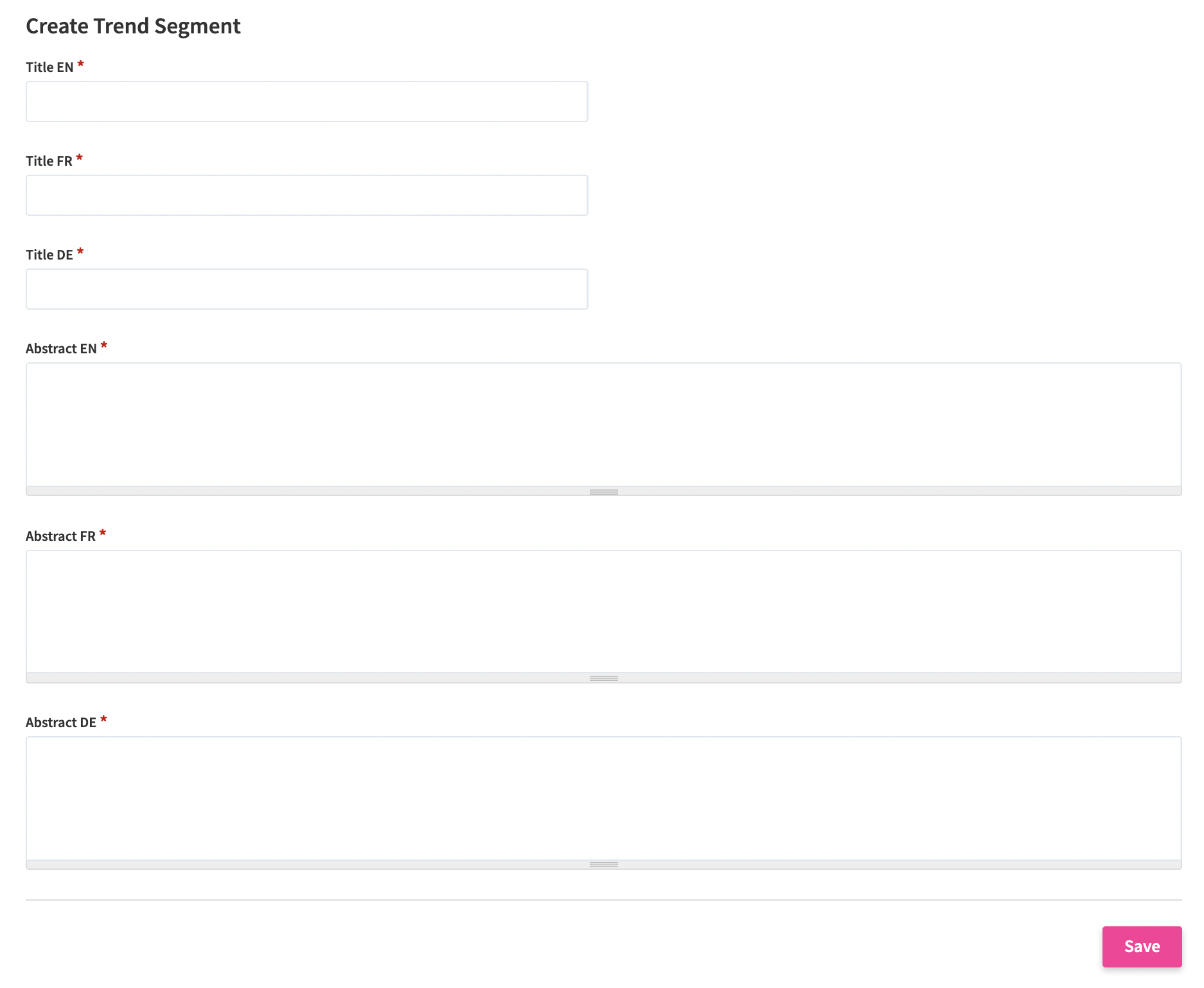 To add a new Segment click the Add button on the Manage Segment interface. When you fill the form, click Save to continue.