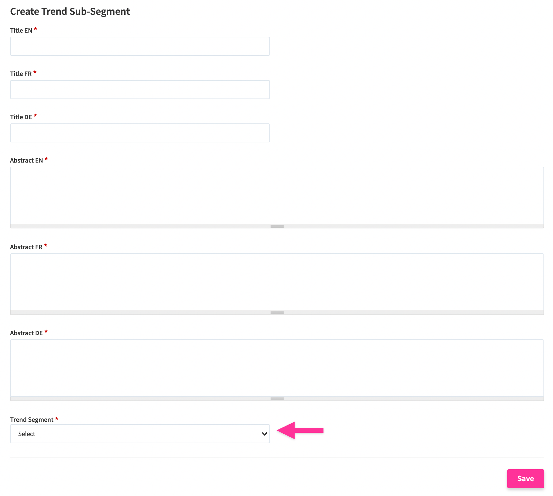 To add a new Sub-segment, navigate to the Settings Wheel > Entity Configuration > Segment Confirguation. Find the according lower hierarchical level in the list, and click on it. From here, you can also add or edit any sub-segment. Fill out the form and pay attention to selecting the right higher-level hierarchy, i.e., a segment from the segment dropdown options. Once done, click Save.