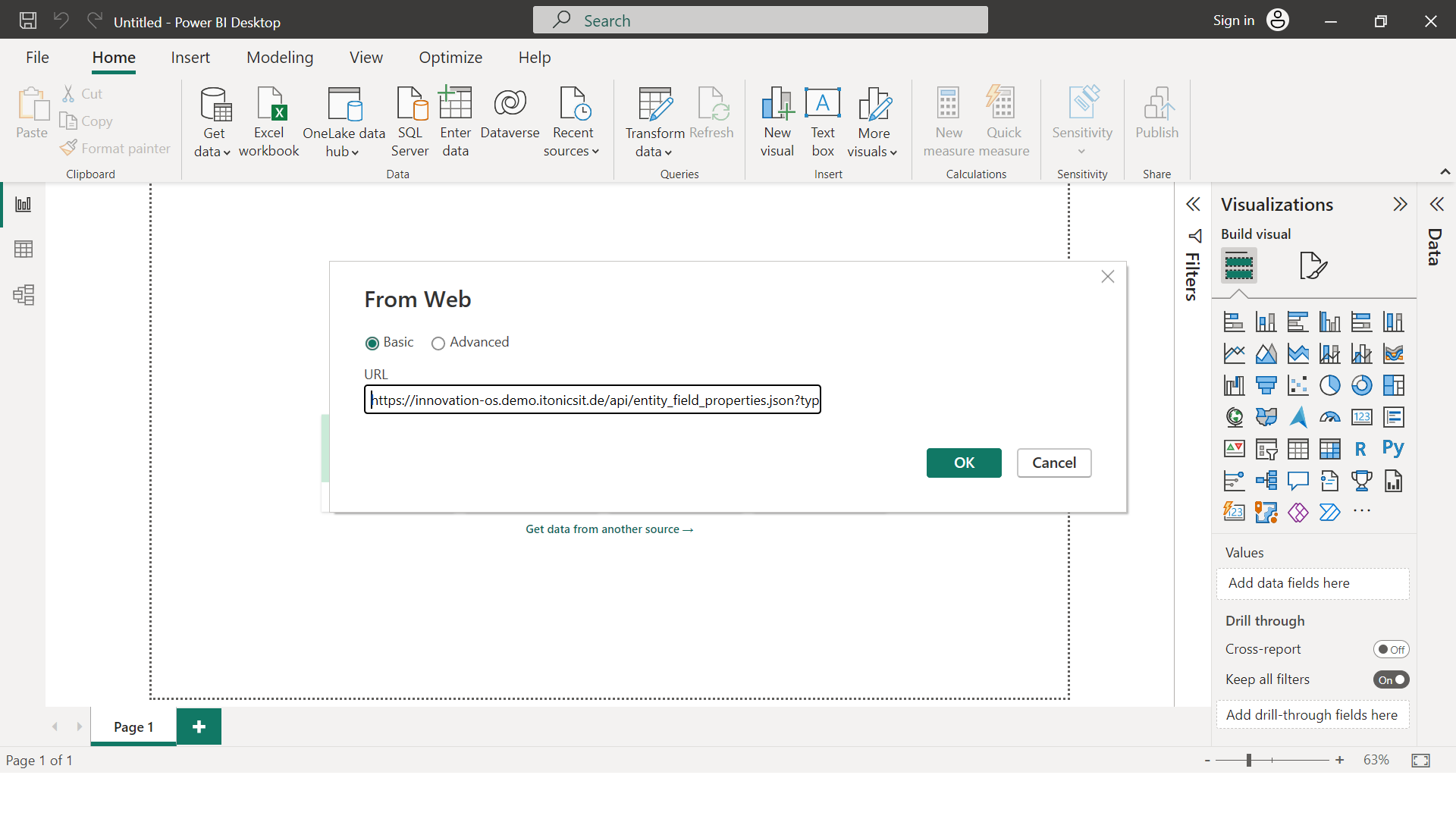 The following steps describe how to set up the connection and pull the data from your ITONICS instance into PowerBI. This data can then be used in PowerBI to create dashboards or to compare with information from other applications.