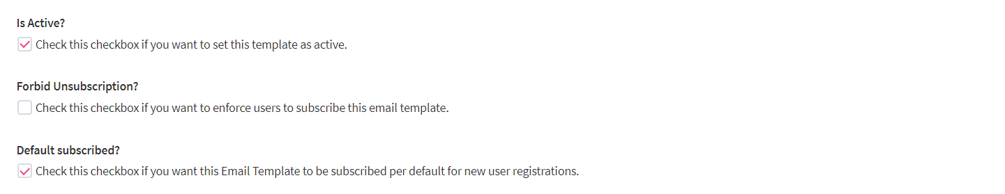 - Activate/deactivate the default subscription of new users to an email template.