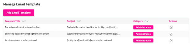 From there, you will find a list of all existing email templates in your application.