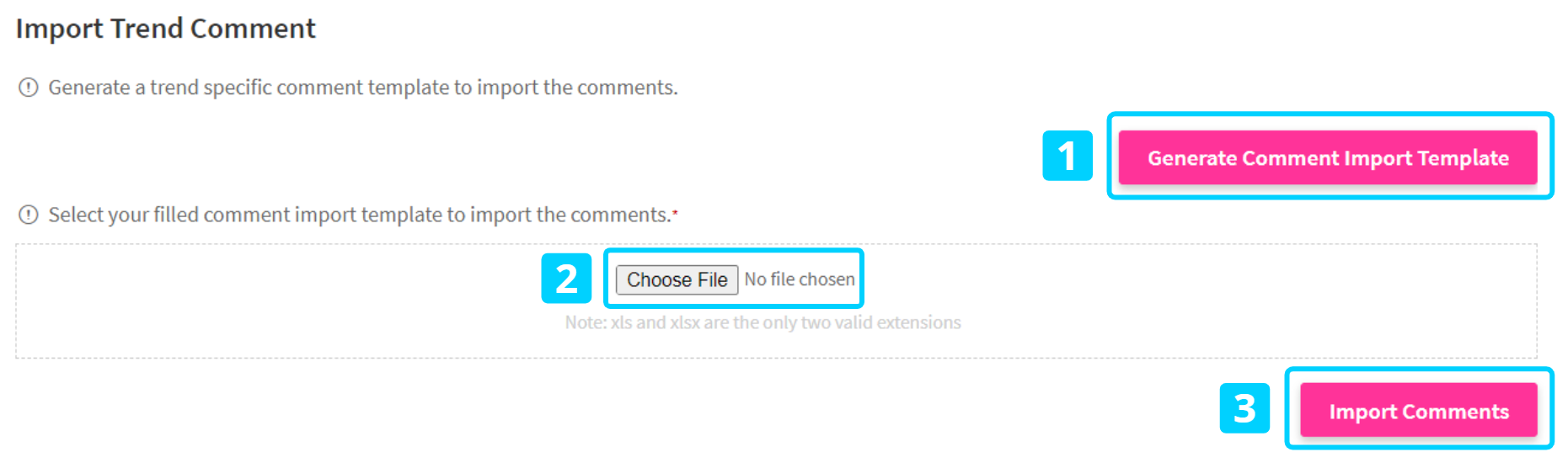 2. Download the import template by clicking on the Generate Comment Import Template button on the right-hand side. (1)