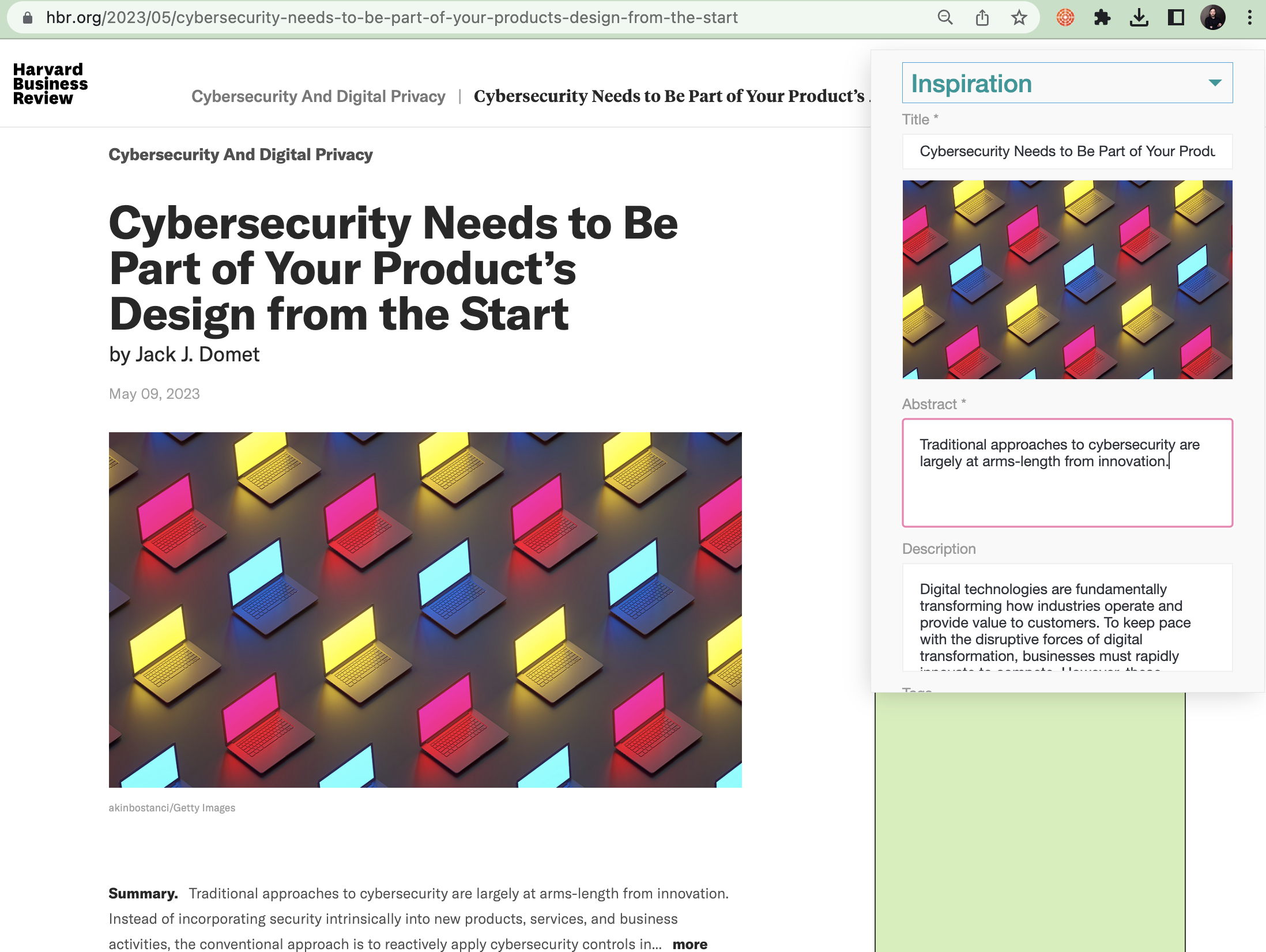 The ITONICS Web Clipper is a browser extension that enables you to clip content from the web directly to your ITONICS platform.