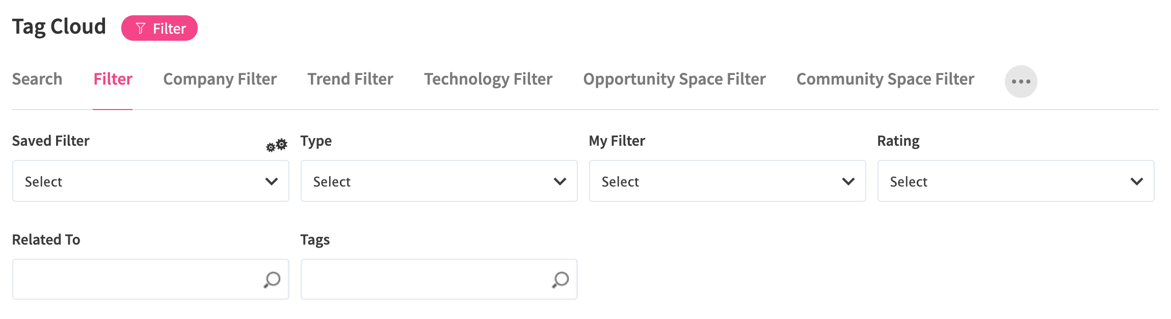 You can also use the Search option or various Filters to specify the view of your Tag cloud.
