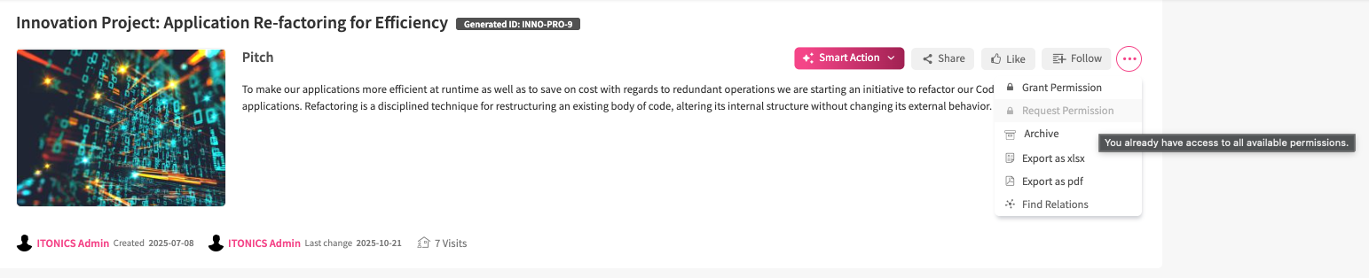 In the ITONICS Platform, access to content is generally governed by global and entity-level roles. However, there are scenarios where specific users need elevated access to a single element (e.g., a specific Trend or Technology) without changing their overall role.