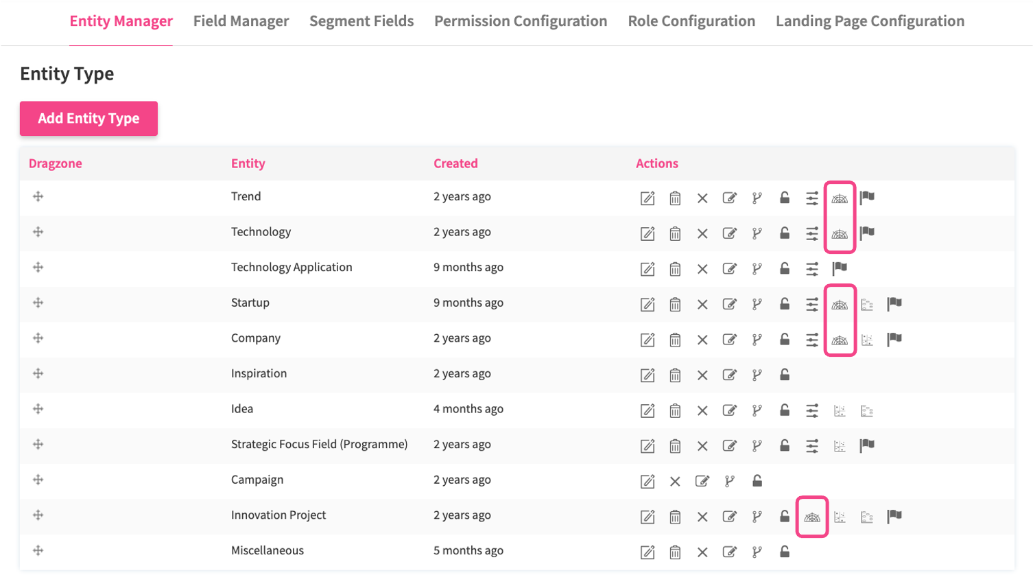 Click the radar icon in the Entity Configuration interface. You will see a small radar icon in the column of each entity for which the radar is enabled.
