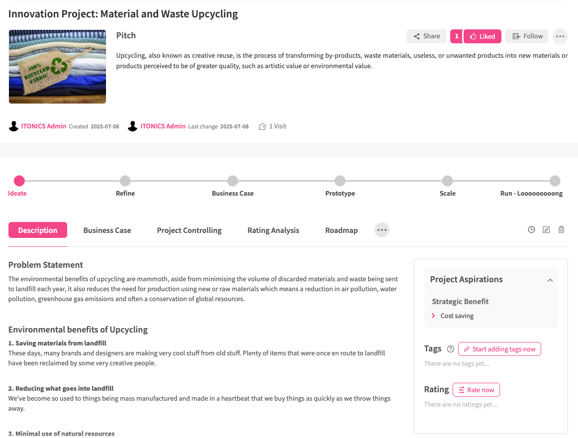- Features marked with a star (*) have to be activated by ITONICS. For more information, please contact your Account- or Customer Success Manager.