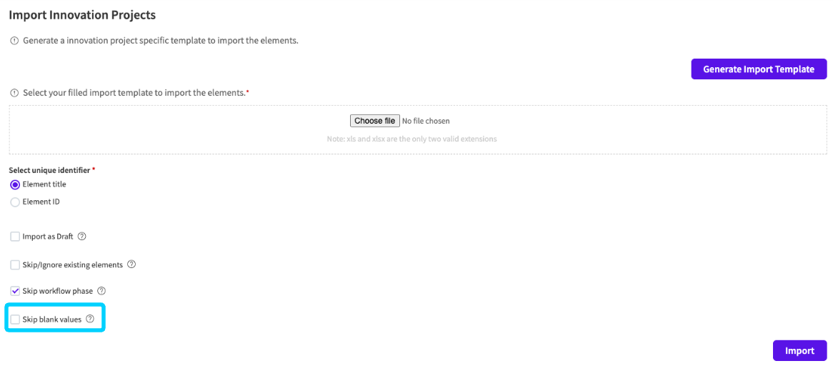 NUC-14931 - Enhanced the Excel import feature with a new option to skip blank values, increasing flexibility and ease-of-use, and preventing accidental data overwrites.