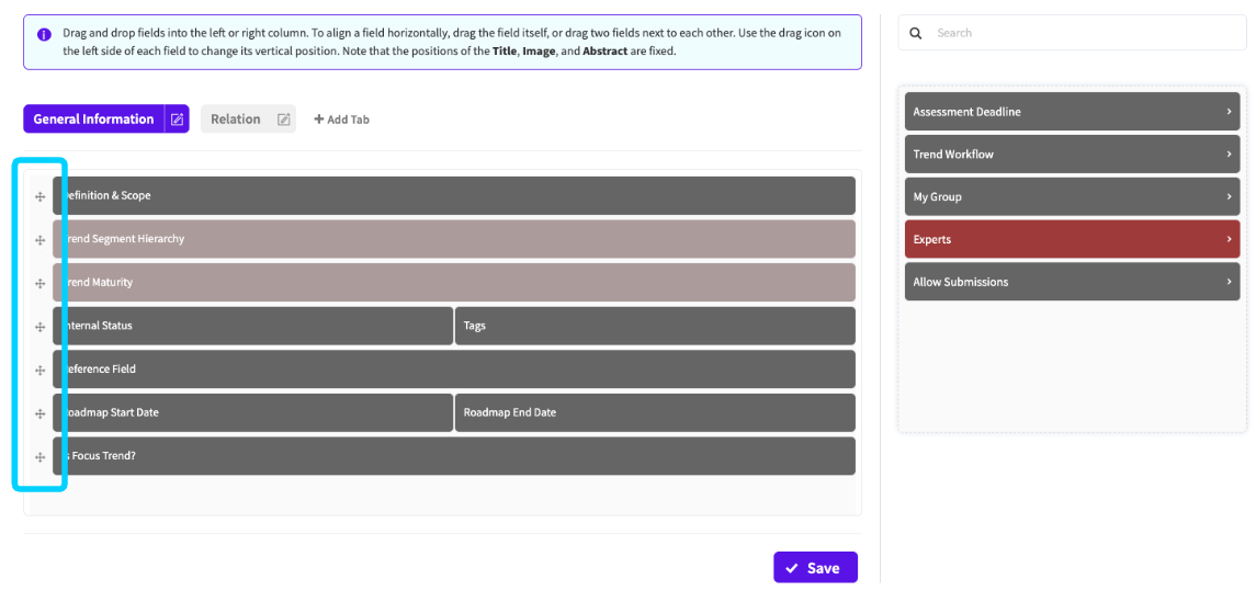 NUC-16565 - Enhanced the drag-and-drop functionality within the form configurations to allow users to more easily align fields vertically in the form editor for an improved user experience and ease-of-use.