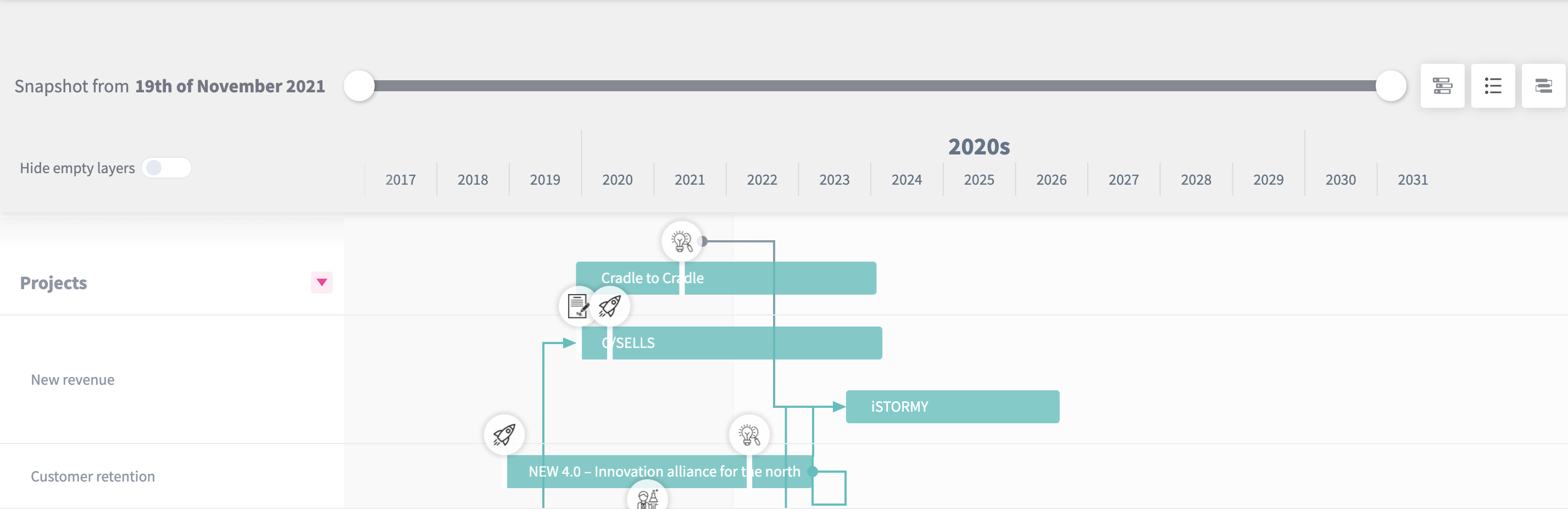 • NUC-4489 Implemented Roadmap snapshots that allow you to save different states of your roadmap for later reference and backup purposes.