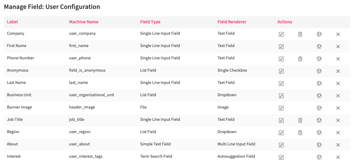 - The value of this column in the template would be the machine name of the corresponding field, as highlighted below.