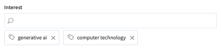 Within your user profile, you may add tags to the Interest field to list topics that you are potentially interested in.