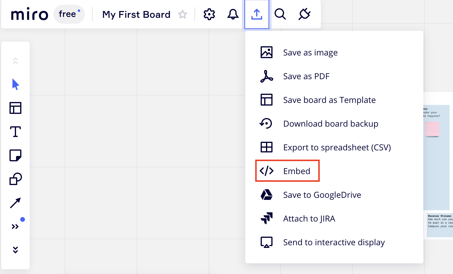 An example: Embedding a Miro Board