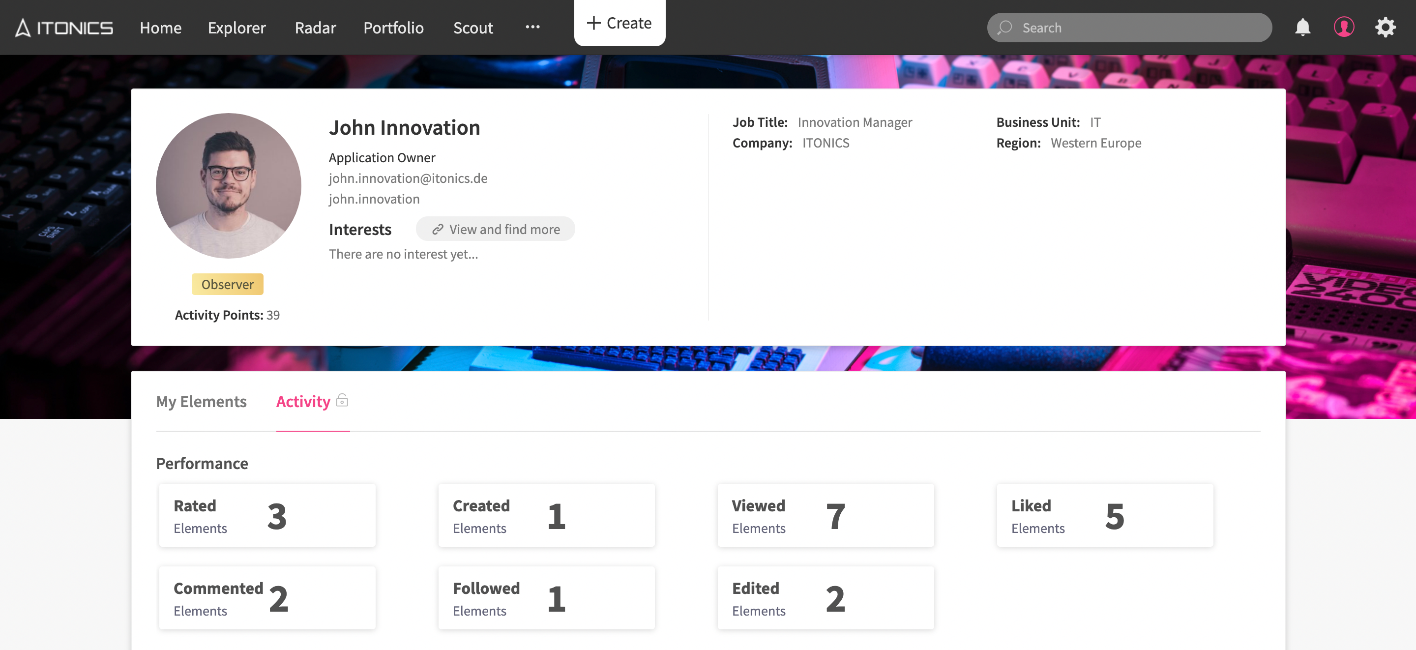 Besides being rewarded badges, ITONICS offers a further option for users to redeem preconfigured vouchers for collected points. The general idea is that users, who have collected enough points to be able to retrieve a specific voucher, can trigger a notification to a responsible that they intend to redeem their collected points.