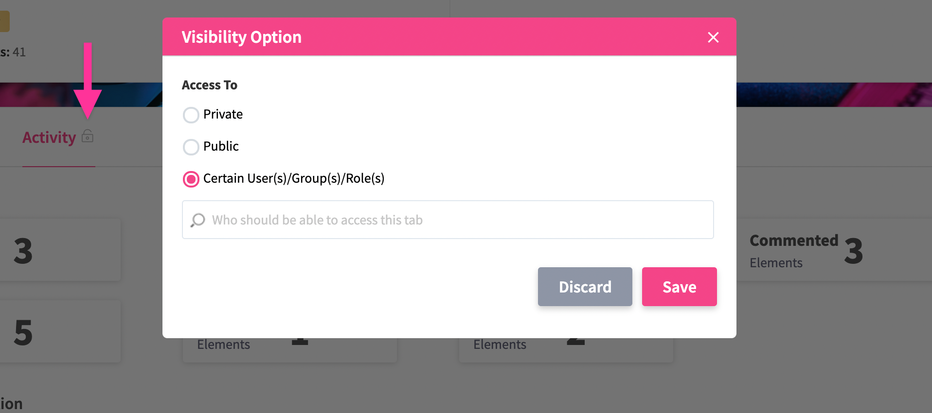 The Activity tab has a visibility option, which can be configured by clicking on the lock icon next to the Activity tab name. You can decide your Activity tab be -