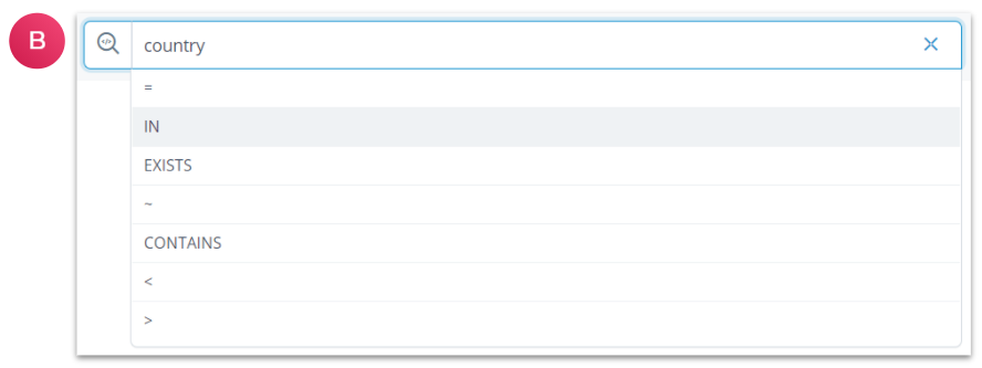 The property in this query is "country", the operator the "=" and the single value to search for "US". What will this query do? It will filter all Signals to show only those that were published in the US.