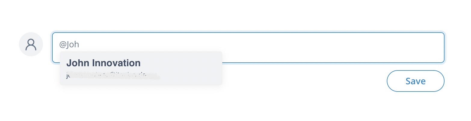 Mentions can be used to tag and notify a user in the comments. Simply type in @ and start typing the name of the user you want to mention.