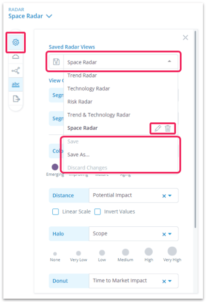 2. Click the pencil icon beside the Radar name on the menu and confirm your changes with Save.